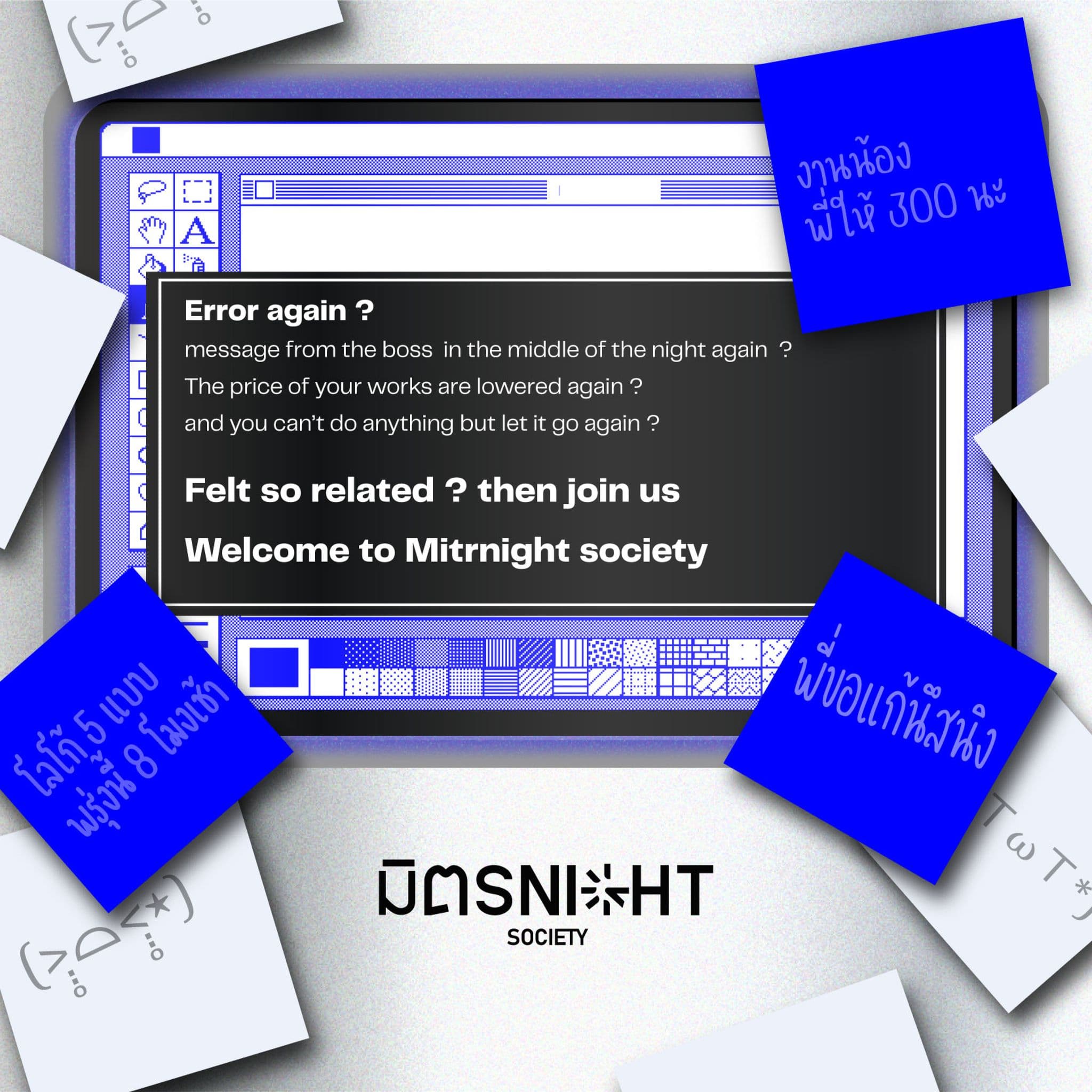 มิตรNight Society เป็นทีมออกแบบแคมเปญ (Campaign Designer) ภายใต้โครงการ Human ร้าย Human Wrong รุ่นที่ 6 โดยมีเป้าหมายหลักในการสนับสนุน แรงงานสร้างสรรค์นอกระบบ (ฟรีแลนซ์) ให้สามารถรวมกลุ่มเพื่อสร้างอำนาจต่อรองด้านสวัสดิการและสิทธิแรงงานกับภาครัฐ
